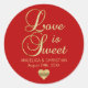 Hermosos pegatinas para regalos bodas o sobres. Mensaje de topografía dorada LOVE IS SWEET en el fondo rojo (se puede cambiar el color). Plantillas de personalizado: fácil de editar.