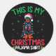 Pegatina Redonda El árbol de navidad feo Santa Doberman Pinscher