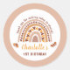 Pegatina Redonda El arco iris rosado moderno primer cumpleaños grac