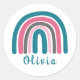 Pegatina Redonda El arcoiris colorido Boho con nombre personalizado