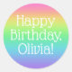 Pegatina Redonda El arcoiris feliz cumpleaños personalizado