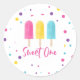 Pegatina Redonda El arcoiris pop dulce un primer cumpleaños