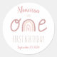 Pegatina Redonda El arcoiris rosado pastel primer cumpleaños