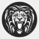 Arte tribal Roaring Lion Face. Diseño gráfico al estilo del arte esténcil. Simple obra de arte para los amantes de los leones.