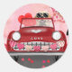 Pegatina Redonda El auto de perro con corazón de San Valentín