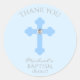 Los pegatinas simples pero elegantes para su pequeño le agradecen los favores en el bautizo o el bautismo de su bebé siguiente. Color de fondo de los azules cielos con la cruz azul y el falso diamante en el centro para un poco tacto de la clase. Añada su texto o suprímalo. Invitaciones a juego disponibles también.