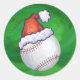 Pegatina Redonda El béisbol en Santa Hat en Green
