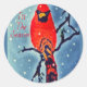 Pegatina Redonda El Cardenal Bird En La Nevada