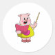 Pegatina Redonda El cerdo como profesor con libro