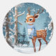 Pegatina Redonda El ciervo lindo en los Navidades de los bosques de