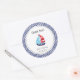 Pegatina redondo para el favor del cumpleaños con diseño náutico del velero.