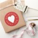 Puro corazón blanco sobre fondo rojo personalizado y diseño de texto circular del Día de San Valentín feliz.