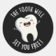 Pegatina Redonda El Diente Te Dará Gratuito Pun Dental Oscuro BG