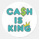 La expresión Cash Is King se ilustra con el signo del dólar y la corona añadidas a las palabras. Para las personas que prefieren el efectivo o creen que su dinero es mejor que el de los bancos. El efectivo disponible es mejor que los cheques, promesas o pagarés. Pagar en efectivo, recibir efectivo - ¡El efectivo es Rey!