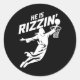 Pegatina Redonda Él Es Rizzin Gracioso Jesús Bysketbyll Meme Retro