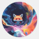 Una obra maestra radiante de colores llamativos que se asemejan a auroras, con un zorro como el guardián etéreo.