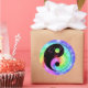 Pegatina Yin yang con un descolorido fondo de tintes de arcoiris.