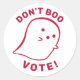 Comparta su apoyo a la democracia y a la igualdad con este pegatina que incluye la frase "No boo, vota" con un ilustracion fantasma kawaii. ¡Este pegatina es un gran regalo a tiempo para Halloween y las elecciones! Este diseño se presenta en varios colores rojo, blanco, azul y negro y blanco para adaptarse a tu estilo.