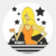 Pegatina Redonda El Ganador Está Con Una Vestida Naranja