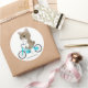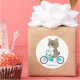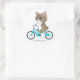 Pegatina Redonda El gato de Tabby está montando una bicicleta.