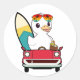 Pegatina Redonda El gracioso pato blanco conduce a la playa