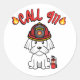 Pegatina Redonda El gracioso perro blanco es un bombero