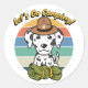 Pegatina Redonda El gracioso perro dálmata quiere ir de campamento