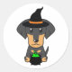Pegatina Redonda El gracioso perro de Dachshund es una bruja