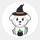 Pegatina Redonda El gracioso perro esponjoso es una bruja