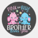 El Hermano Rosa O Azul Te Ama Regalos El Elefante Bebé Género Revelar El Gradoso Diseño Gráfico De La Tripulación Gift Colección Clásica De Pegatina Redondo Clásico.
