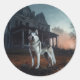 Pegatina Redonda El Husky Halloween Siberian asuy