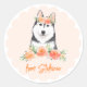 Pegatina Redonda El Husky Siberiano y las Flores de Peach Cumpleaño