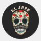 Pegatina Redonda El Jefe Jefe Del Cráneo Del Azúcar Ha