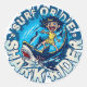 Pegatina Redonda El jinete de tiburones. Surf o morir