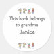 Pegatina Redonda El libro pertenece al Personalizado Cute de nombre