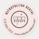 Este diseño redondo de pegatina presenta un logotipo de tres dientes colocados en círculo con estrellas pequeñas que indican una sonrisa limpia y saludable. Su nombre o nombre de práctica se establece en una letra en negrita. Añade tu número de teléfono, sitio web u otros detalles al personalizar a tu gusto. Ideal para añadir tu marca a productos, bolsas de goodie para pacientes o sobres de sellado. Diseño y arte originales © 1201AM Design Studio