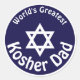 Texto blanco sobre fondo azul que dice "EL MAYOR PADRE KOSHER DEL MUNDO".