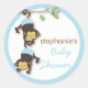 Pegatina Redonda El mono moderno Twin Boy Baby Shower en azul