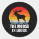 Pegatina Redonda El Moose está suelto Alaska Moose