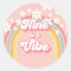 Pegatina Redonda El nueve arco iris retro es un Groovy de Vibe