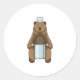 Pegatina Redonda El oso como cocinero con olla de cocina