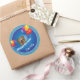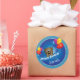 Pegatina Redonda El oso feliz cumpleaños del niño con polka