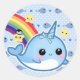 Pegatina Redonda El pequeño narval con arcoiris y estrellas