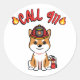 Pegatina Redonda El perro naranja gracioso es un bombero