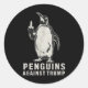 Pegatina Redonda El pingüino se alza contra los pingüinos del dedo