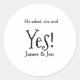 Pegatina Redonda Él preguntó ella dijo que sí fiesta de compromiso
