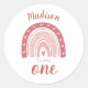 Pegatina redondo clásico del primer cumpleaños del Boho arcoiris rosado lindo