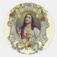Pegatina Redonda El Sagrado Corazón Religioso Jesús Vintage Rosas