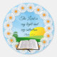 Escena de la salida del sol de un Art Deco rodeada de margaritas con una Biblia abierta y palabras de Salmo 27:1 "El Señor es mi luz y mi salvación" Cambia el texto si lo deseas.