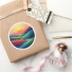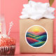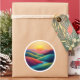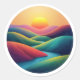Una ilustración de arte digital moderno encerrada en un círculo, que presenta un paisaje estilizado de colinas onduladas en gradientes ricos y saturados.